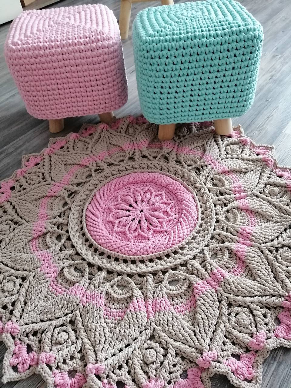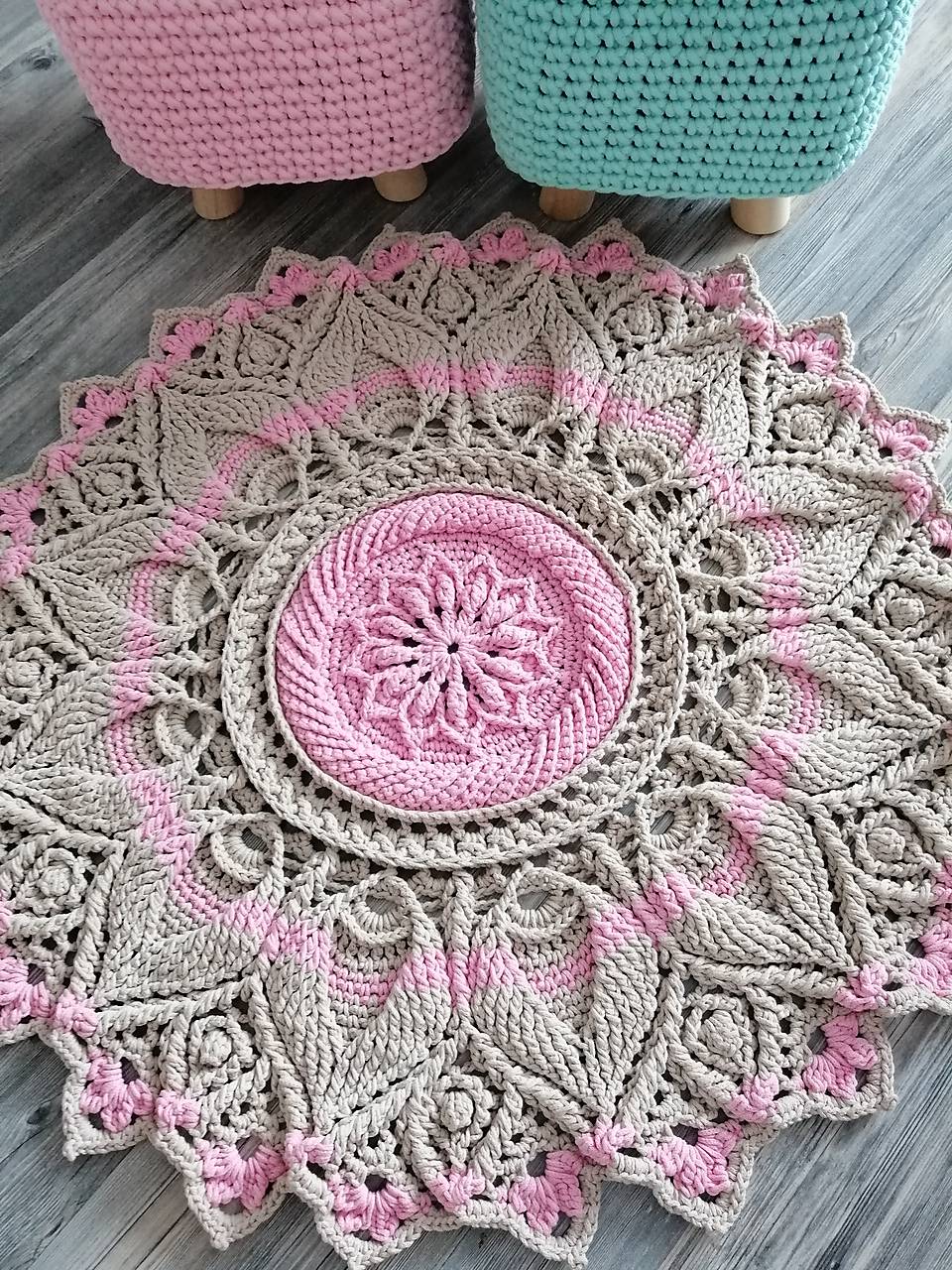 tapete de crochê artesanal | tapete redondo de crochê | tapete de crochê rosa | tapete de barbante | tapete feito à mão | tapete decorativo artesanal | tapete de crochê para sala | tapete artesanal de algodão