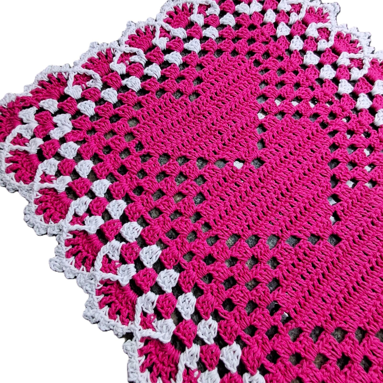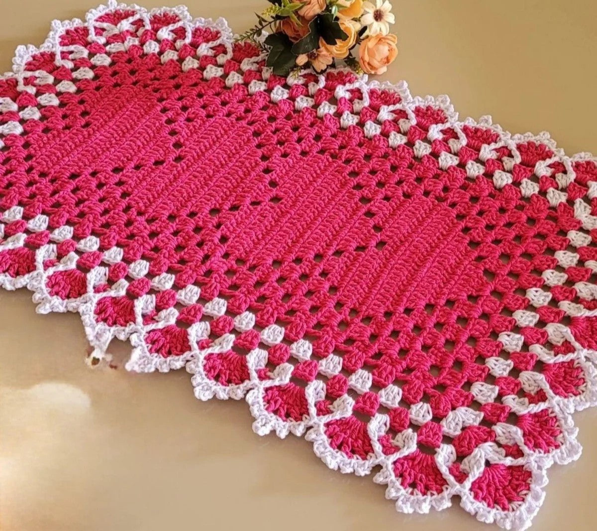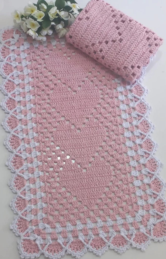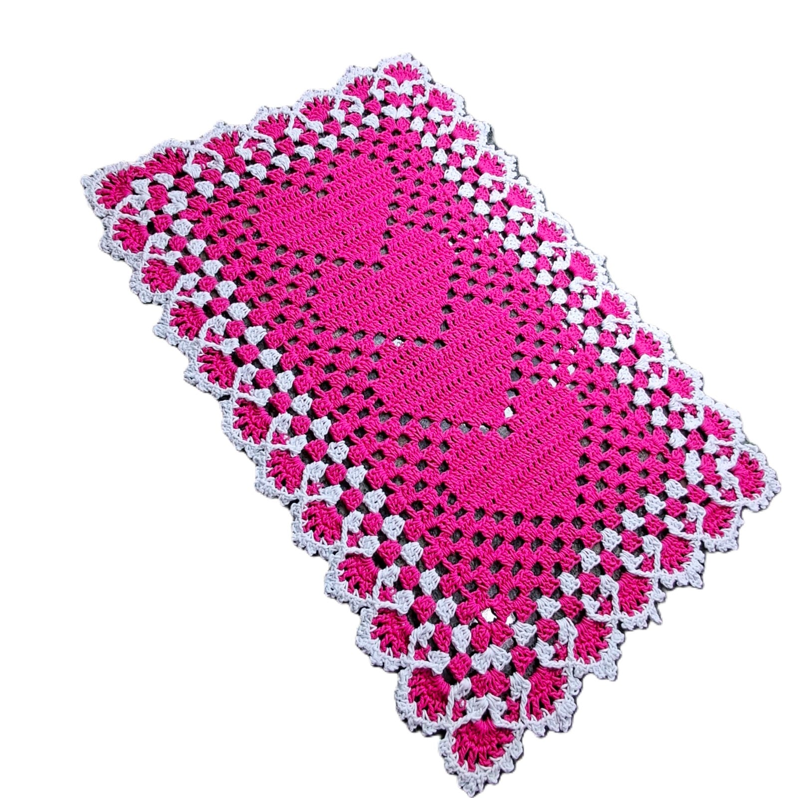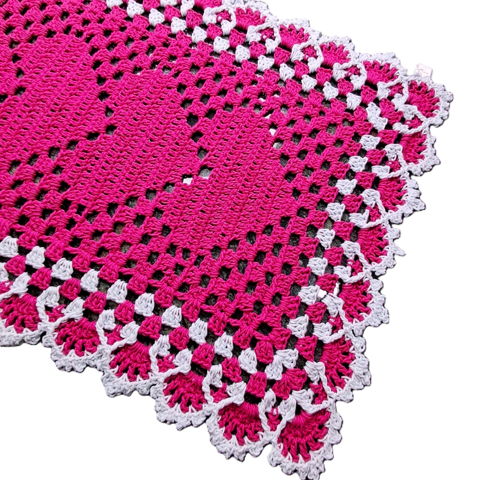 tapete de crochê artesanal | tapete de crochê retangular | tapete de barbante | tapete feito à mão | tapete de crochê rosa | tapete decorativo artesanal | tapete de crochê para sala | tapete artesanal de algodão